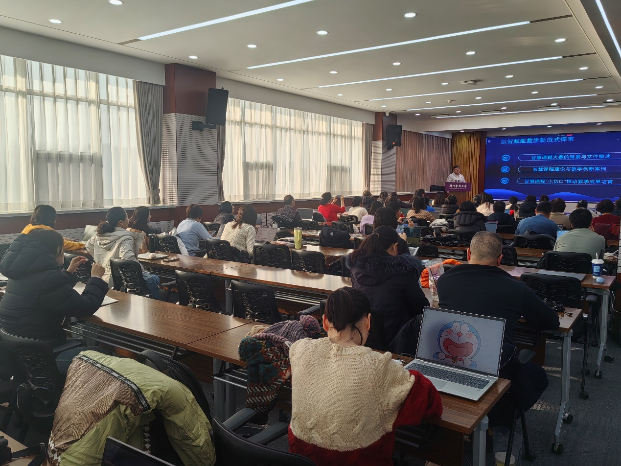 为积极响应国家教育数字化战略行动,推动人工智能与高等教育的深度融合,1月15日下午,学校组织全校智慧课程负责教师参加了由教师教学发展中心、超星泛雅集团联合举办的第二届“泛雅杯”全国高校智慧课程设计大赛赛前培训。