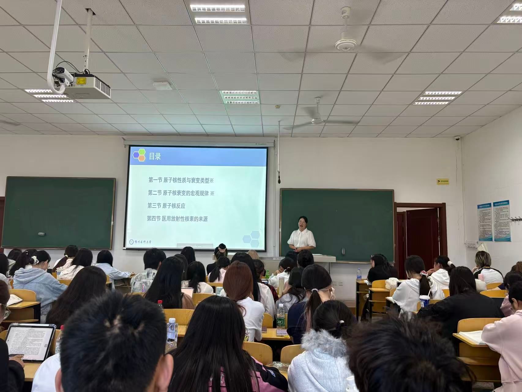 为推进“课堂革命”与“金课”建设,发挥优秀教师示范作用,智能医学学院近日组织校级教学示范课,由2024年省教学创新大赛二等奖获得者邓悦老师主讲。邓悦老师以“影像物理学”为例,系统讲解原子核物理基础与核医学影像应用,通过视频导入、实例分析及习题实操,贯通“理论—实例—应用”教学主线,有效衔接物理原理与医学实践,课堂逻辑清晰、生动严谨。