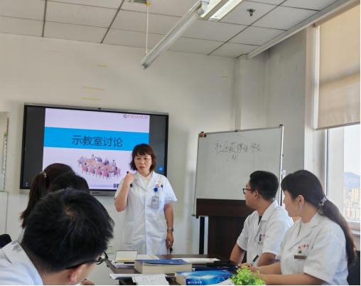 活动采用“三段式”教学流程,突出“以学生为中心”的教学理念。在示教室环节,邸金娜老师首先明确本次教学查房的目标,强调临床诊治思维、医患沟通与人文关怀能力的培养。随后,程诗宇同学作为主管医师代表,系统汇报病例,展现出扎实的病史采集与病例梳理能力。