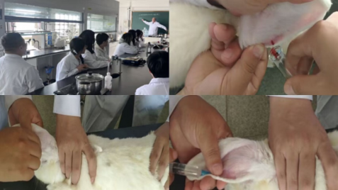 课上,吴教授系统讲解了药动学参数求算的核心原理与方法,现场演示家兔耳缘静脉取血的关键操作及注意事项,并详细拆解单室模型一级动力学消除方程的拟合过程,指导学生计算斜率、截距等关键数据。最终,在老师的精准指导下,学生顺利完成实验操作与数据处理,成功求得消除速率常数(K值)、半衰期、清除率、曲线下面积等核心药动学参数,取得了良好的实验效果。