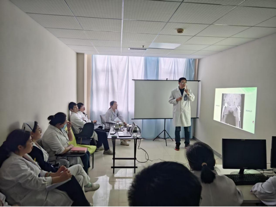 2025年11月6日上午9:00,第一临床医学院骨外科学教研室闫鹏老师以骨质疏松性骨折的治疗为主要教学内容开展临床见习课教学示范。闫鹏老师首先带领学生进入示教室,复习理论知识,然后带领学生进入病房,对真实患者进行问诊、查体。引导学生进行完善、补充,进一步提升学生的基本问诊技能。最后回到示教室,围绕诊断、鉴别诊断分析病例,发现并纠正学生基本技能的不足之处,启发、引导学生进行归纳、总结、分析、鼓励发散思维,师生频繁互动达到了极好的课堂效果。